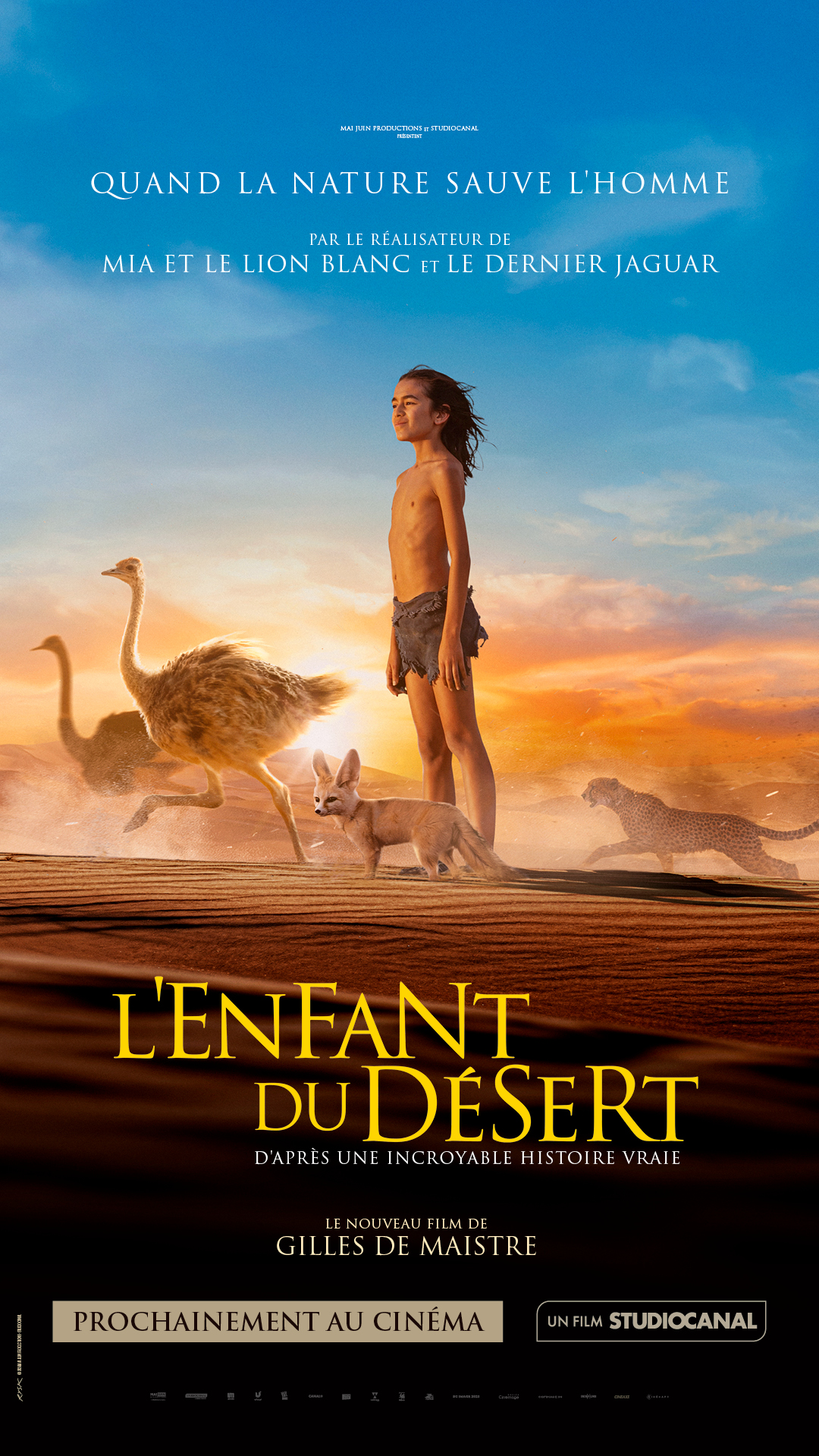 | L'ENFANT DU DÉSERT Un film de Gilles de Maistre Avec Nahel Tran, Zayn Sekkat, Nahïl Bouazzaoui Sun, âgée de 14 ans, a publié un livre inspiré d'une histoire que son grand-père lui racontait : l'incroyable histoire d'Hadara, un enfant nomade perdu par sa famille à l’âge de 2 ans dans une tempête de sable dans le désert, qui a ensuite été recueilli et élevé par un couple d’autruches. Mais lorsque Sun est invitée à visiter le Sahara, elle se rend compte qu'Hadara est peut-être plus qu'une simple histoire pour s'endormir. Aventure - France - 2026 - 1H32 - Dès 8 ans | ||||||||||