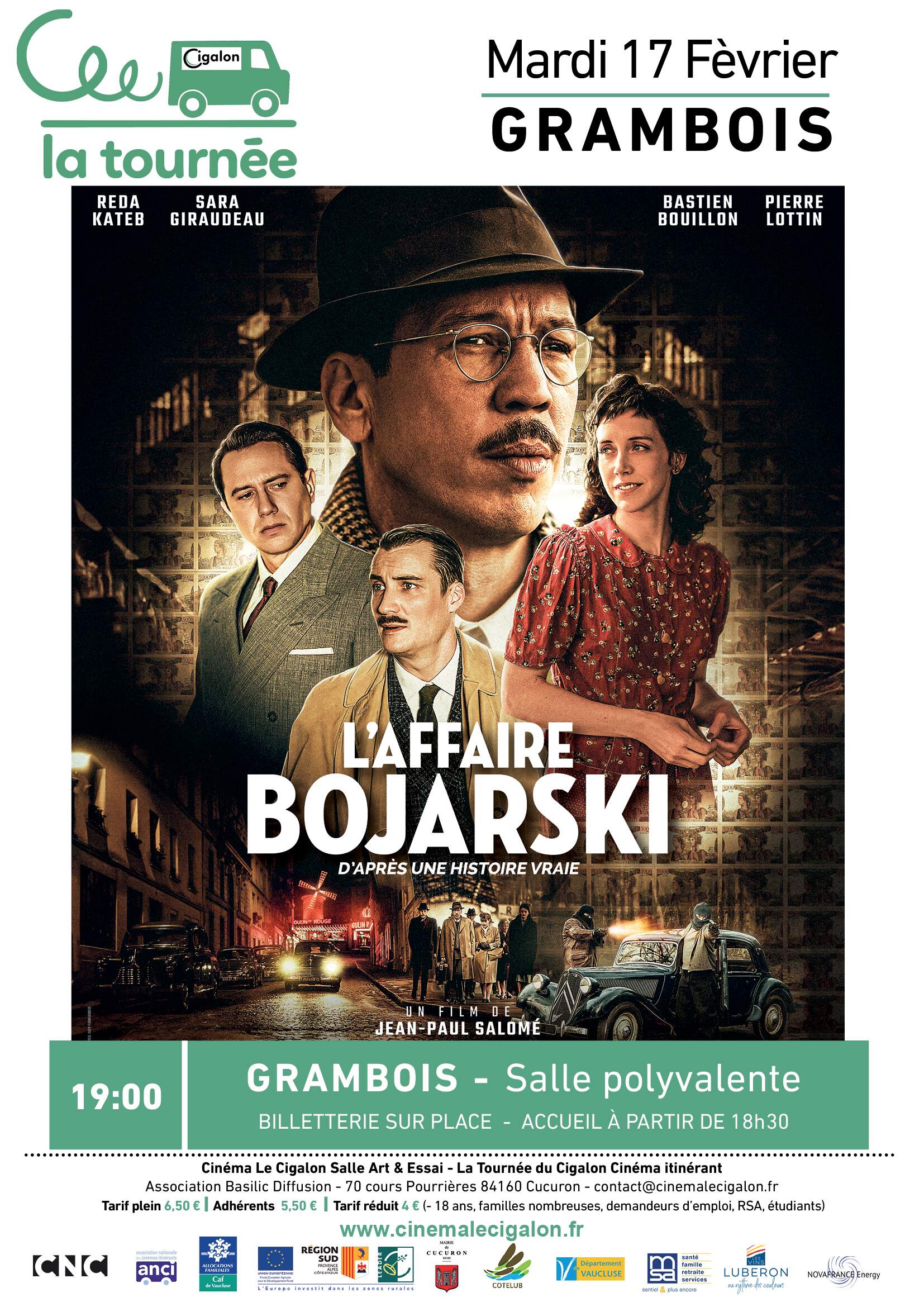 À GRAMBOIS, Salle polyvalente L’Affaire Bojarski Jan Bojarski, jeune ingénieur polonais, se réfugie en France pendant la guerre. Il y utilise ses dons pour fabriquer des faux papiers pendant l’occupation allemande. Après la guerre, son absence d’état civil l’empêche de déposer les brevets de ses nombreuses inventions et il est limité à des petits boulots mal rémunérés… jusqu’au jour où un gangster lui propose d’utiliser ses talents exceptionnels pour fabriquer des faux billets. Démarre alors pour lui une double vie à l’insu de sa famille. Très vite, il se retrouve dans le viseur de l’inspecteur Mattei, meilleur flic de France. | |