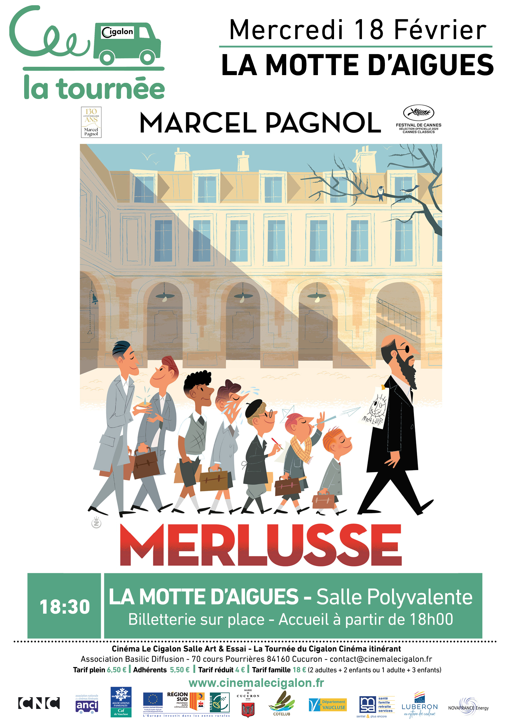 | À LA MOTTE D'AIGUES, Salle polyvalente Mercredi 18 février 18h30 Merlusse Un film de Marcel Pagnol Drame - France - 1935 - 1h08 À Noël, il ne reste au lycée que quelques enfants oubliés par les leurs parents. Ces orphelins sont livrés au plus effrayant et détesté de tous les pions : Merlusse, au visage balafré. | |