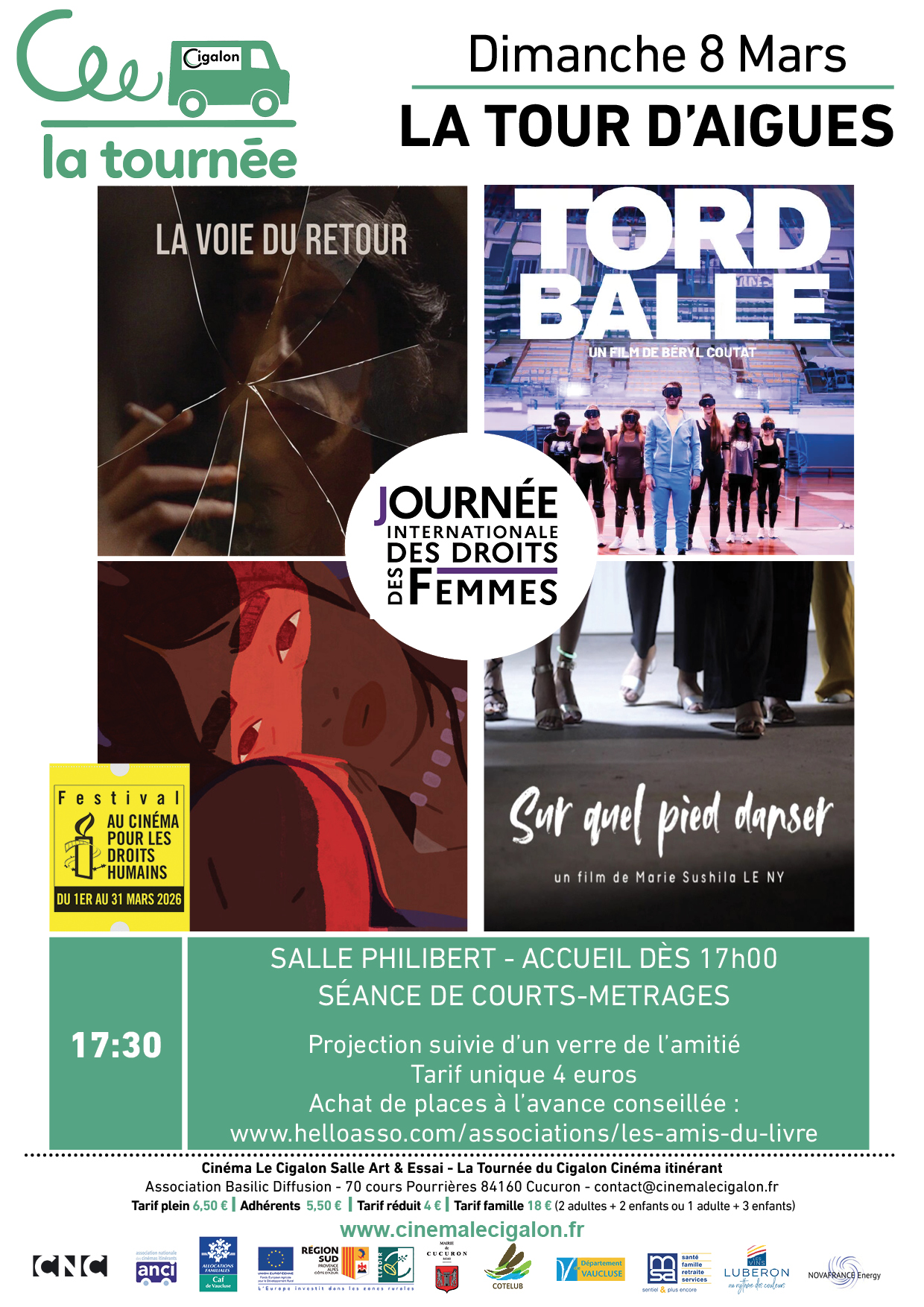 A l'occasion de la Journée internationale des droits des femmes, séance de 4 courts métrages organisée dans le cadre du Festival Au cinéma pour les droits humains d'Amnesty International, en partenariat avec la bibliothèque de La Tour d’Aigues.