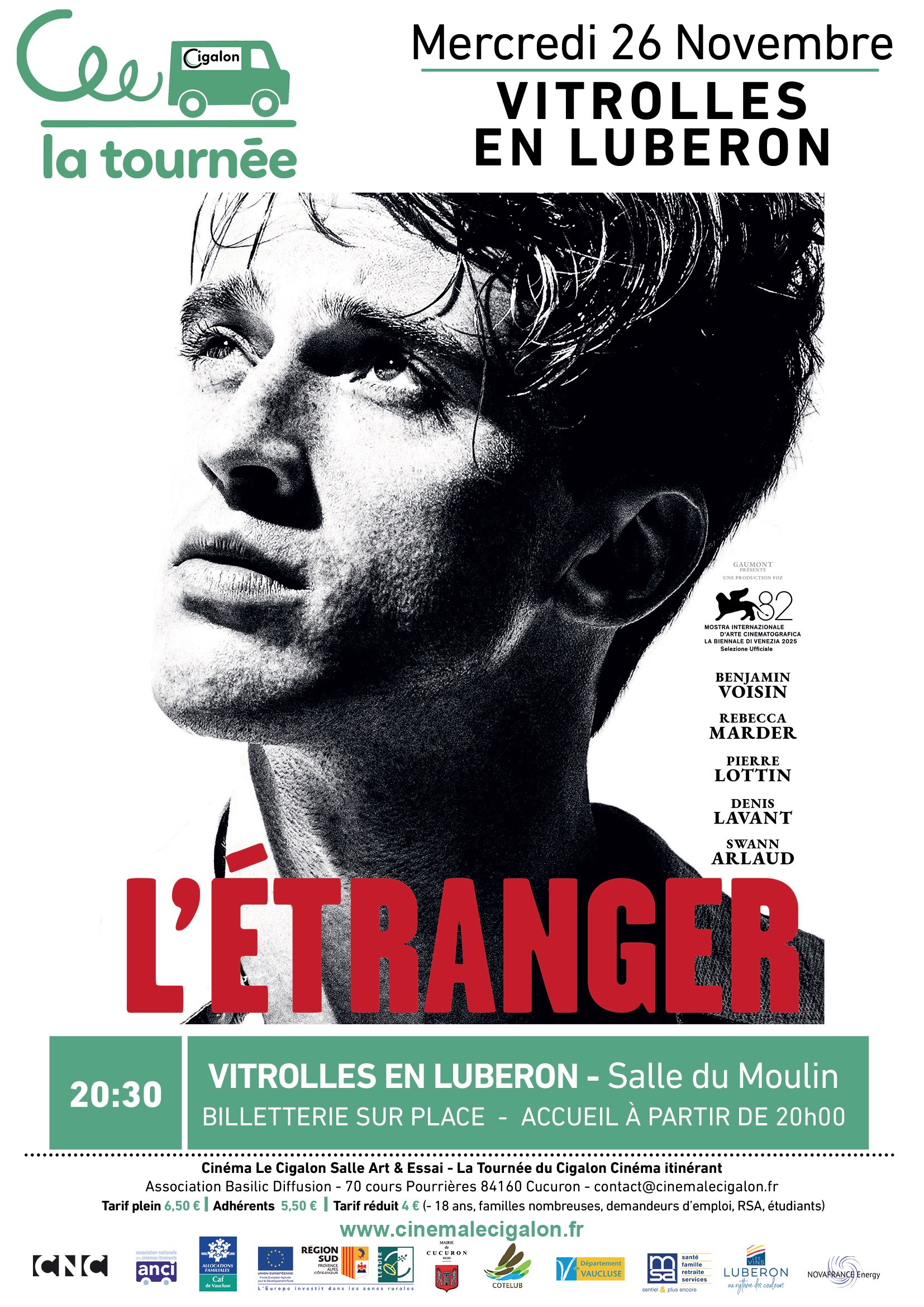 | À VITROLLES EN LUBERON, Salle du Moulin Mercredi 26 Novembre à 20H30 L'ÉTRANGER Un film de François Ozon Avec Benjamin Voisin, Rebecca Marder, Pierre Lottin