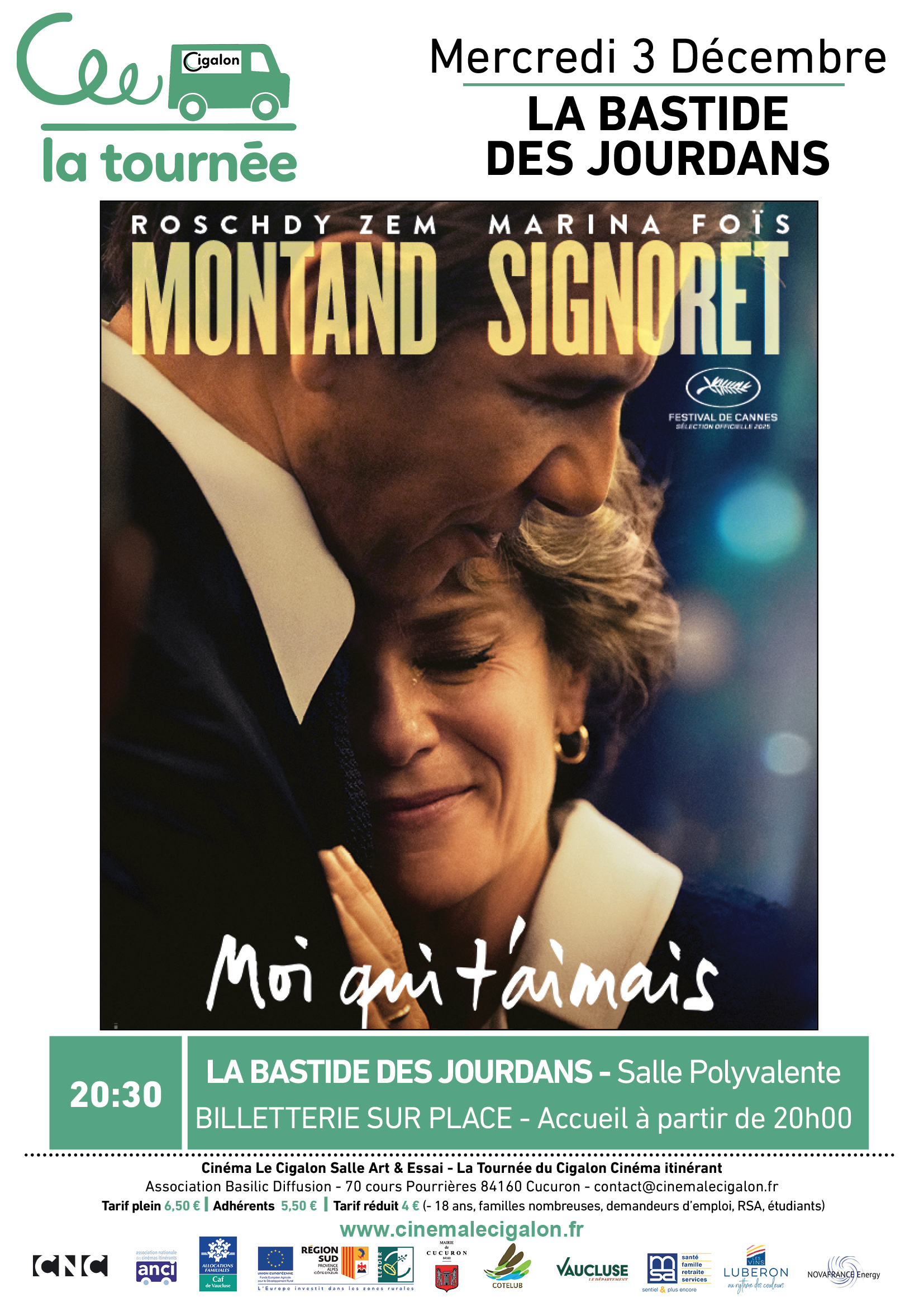 | À LA BASTIDE DES JOURDANS, Salle Polyvalente Mercredi 3 Décembre à 20H30 MOI QUI T'AIMAIS Un film de Diane Kurys Avec Marina Foïs, Roschdy Zem, Thierry de Peretti